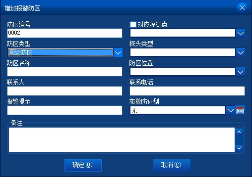 可錄入報(bào)警防區(qū)的聯(lián)系信息和探頭類型及防區(qū)備注。