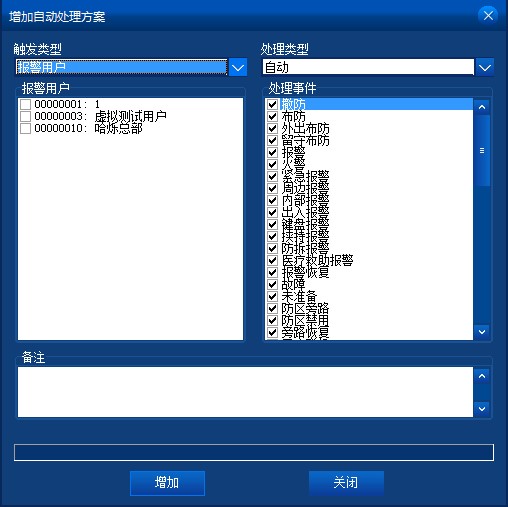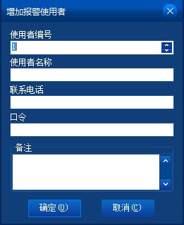 右鍵菜單,點(diǎn)擊【增加】,將彈出增加報(bào)警使用者框,如下圖: