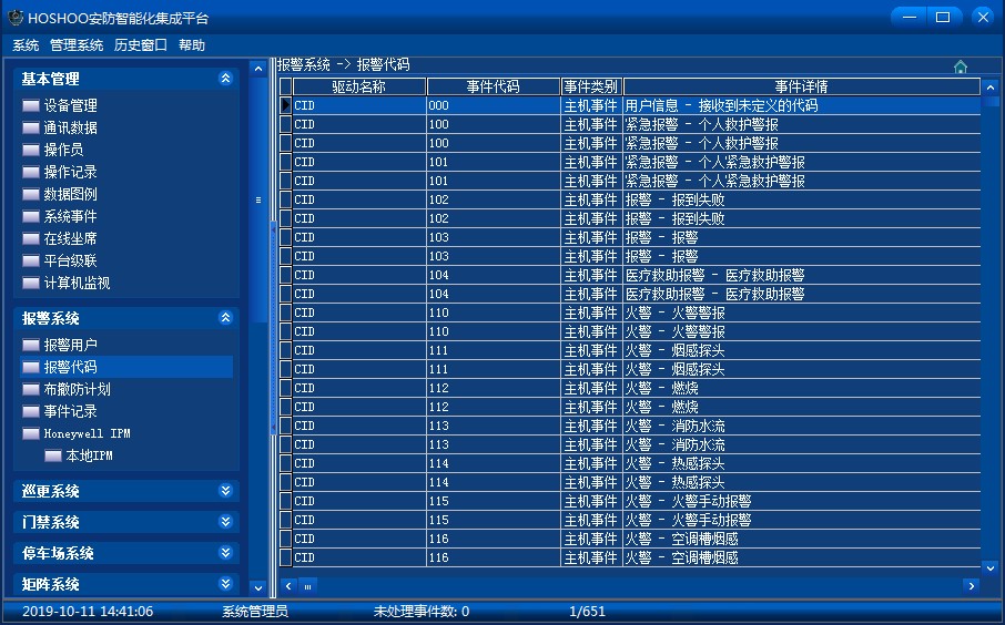管理報(bào)警系統(tǒng)的主機(jī)報(bào)警代碼。