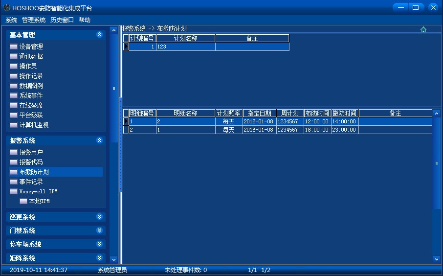 計(jì)劃編號(hào)不允許重復(fù),計(jì)劃名稱不允許為空,這些是布撤防計(jì)劃必須的信息。