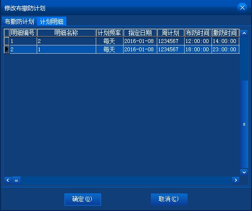 修改布撤防計(jì)劃時(shí),顯示布撤防計(jì)劃明細(xì)選項(xiàng)頁(yè)。如下圖: