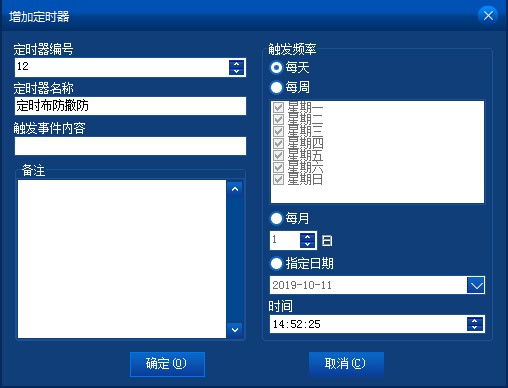 右鍵菜單,點(diǎn)擊【增加】,將彈出增加布撤防計(jì)劃框,如下圖: