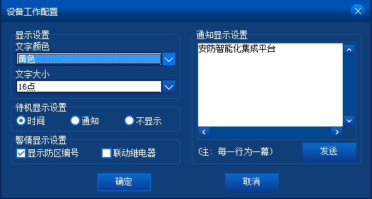設(shè)置顯示屏的顯示參數(shù):顏色、文字大??;待機(jī)顯示方式、警情顯示設(shè)置和通知顯示設(shè)置