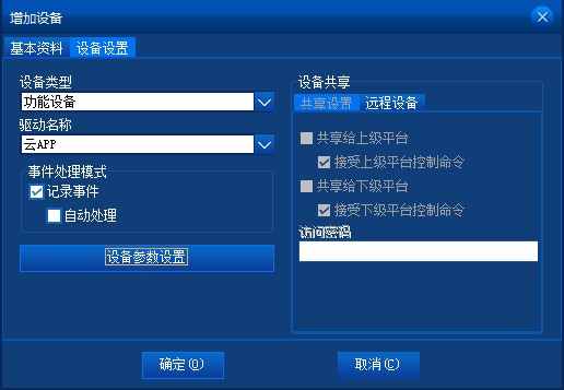 設(shè)備共享:共享給上級(jí)平臺(tái):將該設(shè)備共享給上級(jí)平臺(tái),以便上級(jí)平臺(tái)通過網(wǎng)絡(luò)可使用該設(shè)備;接受上級(jí)平臺(tái)控制命令,設(shè)置是否允許上級(jí)平臺(tái)對(duì)設(shè)備發(fā)送控制命令。共享給下級(jí)平臺(tái):將該設(shè)備共享給下級(jí)平臺(tái),以便下級(jí)平臺(tái)通過網(wǎng)絡(luò)可使用該設(shè)備;接受下級(jí)平臺(tái)控制命令,設(shè)置是否允許下級(jí)平臺(tái)對(duì)設(shè)備發(fā)送控制命令??稍O(shè)置共享出去時(shí)的訪問密碼,兩邊密碼要一致時(shí),方可訪問。對(duì)應(yīng)遠(yuǎn)程平臺(tái)共享設(shè)備:可使用其他平臺(tái)的共享設(shè)備,選擇與本平臺(tái)連接的遠(yuǎn)程平臺(tái)的名稱后,再選擇該平臺(tái)的共享的設(shè)備,則當(dāng)前設(shè)備為遠(yuǎn)程平臺(tái)所對(duì)應(yīng)的共享設(shè)備,可通過網(wǎng)絡(luò)訪問這個(gè)遠(yuǎn)程設(shè)備??稍O(shè)置共享設(shè)備的訪問密碼,要與被共享設(shè)備設(shè)置的訪問密碼一致時(shí),方可訪問。對(duì)共享設(shè)備提供訪問保護(hù)。