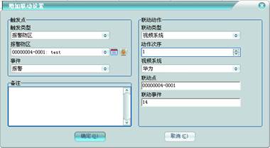 在集成平臺(tái)軟件的事件聯(lián)動(dòng)設(shè)置, 聯(lián)動(dòng)點(diǎn)對(duì)應(yīng)設(shè)備ID, 聯(lián)動(dòng)事件對(duì)應(yīng)事件代碼,如下圖: