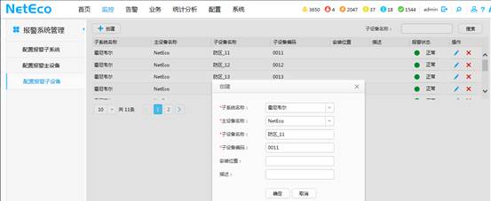進(jìn)入【監(jiān)控?報(bào)警系統(tǒng)?配置報(bào)警子設(shè)備】頁(yè)面,選擇子系統(tǒng)和主設(shè)備,子設(shè)備名稱可以自行命名,同一主設(shè)備下的子設(shè)備不重名即可,子設(shè)備編碼與集成平臺(tái)中報(bào)警防區(qū)的防區(qū)編號(hào)一致,編碼的前幾位0頁(yè)必須填寫。