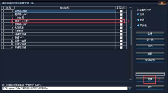 《短信服務(wù)器》文件夾 → 《短信服務(wù)器按照工具》點(diǎn)擊運(yùn)行頁(yè)面如下: