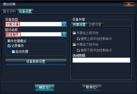 設(shè)備類型選擇功能設(shè)備,驅(qū)動(dòng)名稱選擇短信服務(wù):