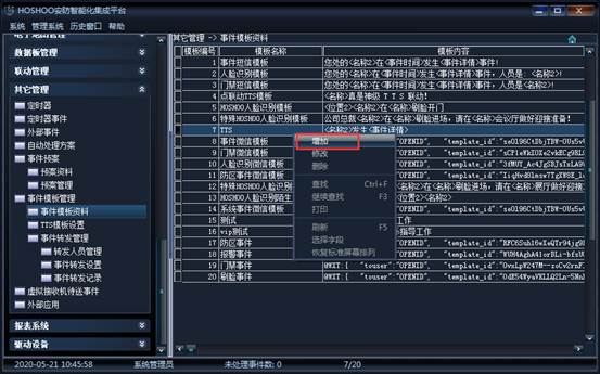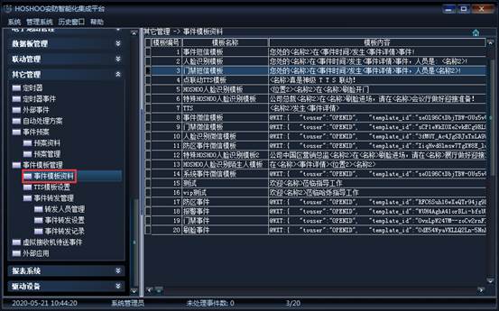 《其它管理》→《事件模板管理》→《事件模板資料》,如圖: