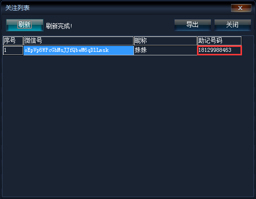 2、設(shè)置列表關(guān)注填寫組記號(hào)碼(主機(jī)號(hào)碼填關(guān)注人的手機(jī)號(hào)):