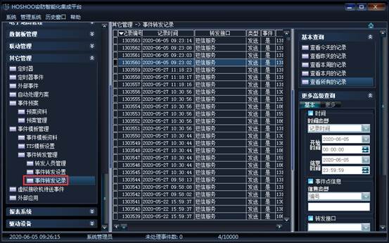 《其它管理》→《事件轉(zhuǎn)發(fā)管理》→《事件轉(zhuǎn)發(fā)設(shè)置》,如圖: