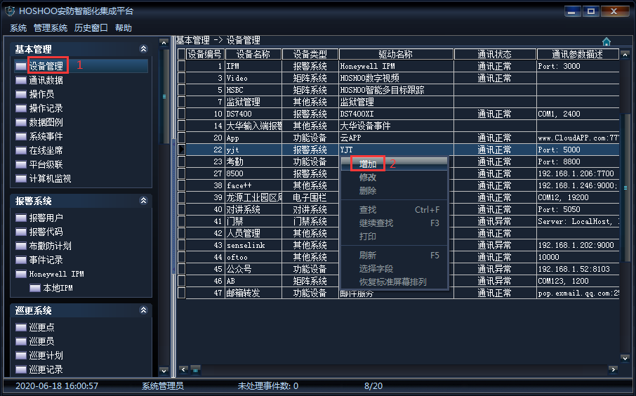 1、《設(shè)備管理》→右鍵菜單《增加》,如下圖所示: