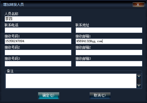 接收郵箱1、2、3:最少填寫一個接收郵箱,其他可選填;