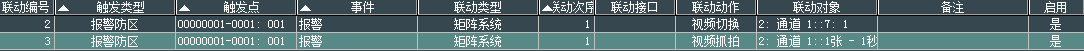 1. 需在安防智能化集成平臺端設(shè)置聯(lián)動管理中設(shè)置聯(lián)動,要實(shí)現(xiàn)警報(bào)聯(lián)動監(jiān)控視頻切換及拍照功能的效果,如下圖所示的兩條設(shè)置(另有抓拍圖片數(shù)量等設(shè)置,請參考安防智能化集成平臺手冊):