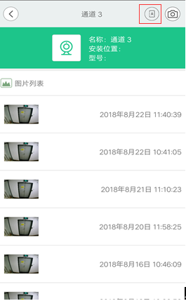 4. 點(diǎn)擊進(jìn)入所選通道,可以查看該通道的信息如下圖所示,使用左上角的攝像機(jī)按鈕可以進(jìn)行抓拍,并記錄事件到安防智能化集成平臺端和APP端;點(diǎn)擊圖片列表中的圖片會顯示大圖。