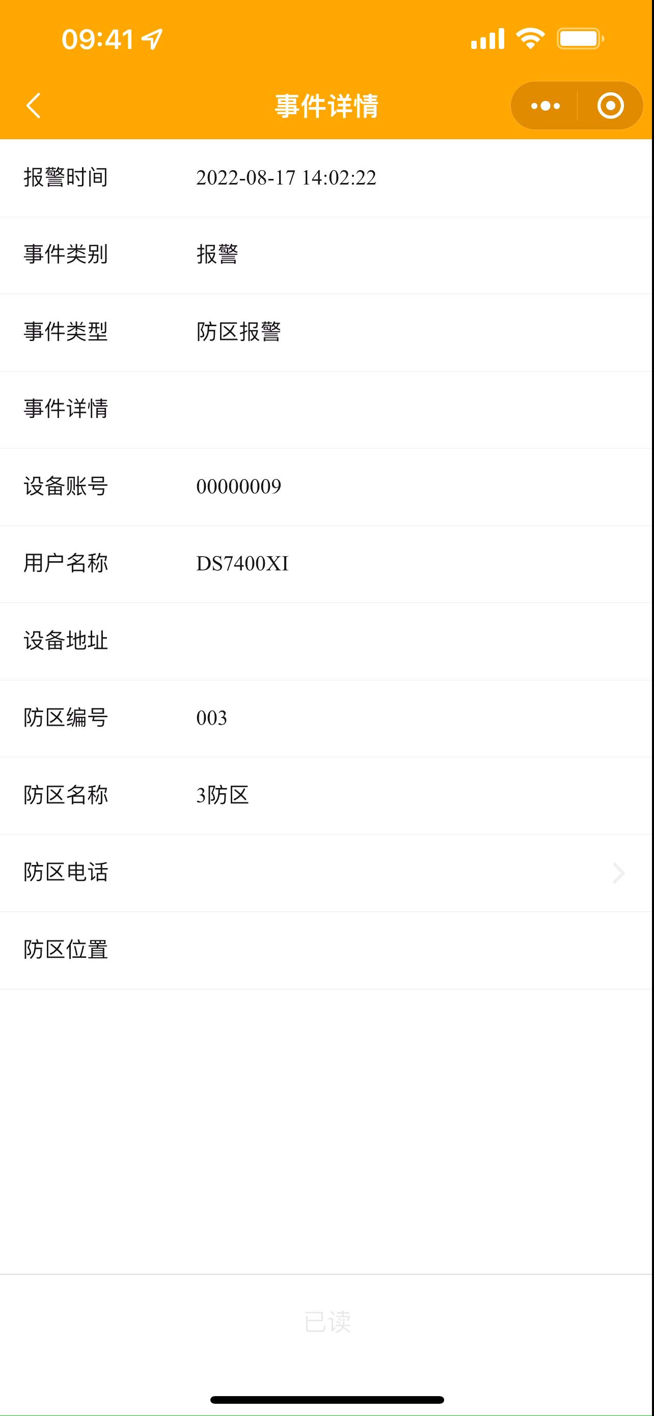 2. 在小程序端主機(jī)點(diǎn)擊一個(gè)報(bào)警設(shè)備,顯示效果如下圖,