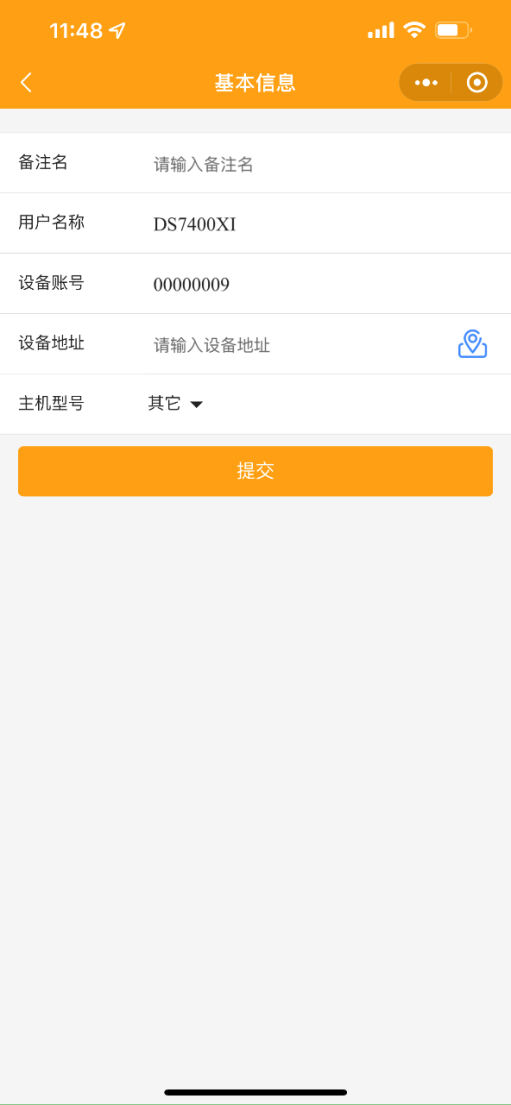 2.1 設(shè)置主機(jī)基本信息:可選填備注名、設(shè)備地址,選擇主機(jī)型號(hào)。點(diǎn)擊設(shè)備地址右側(cè)按鈕,可設(shè)置主機(jī)的地圖選點(diǎn),地圖選點(diǎn)可通過(guò)移動(dòng)或輸入地址來(lái)定位。
