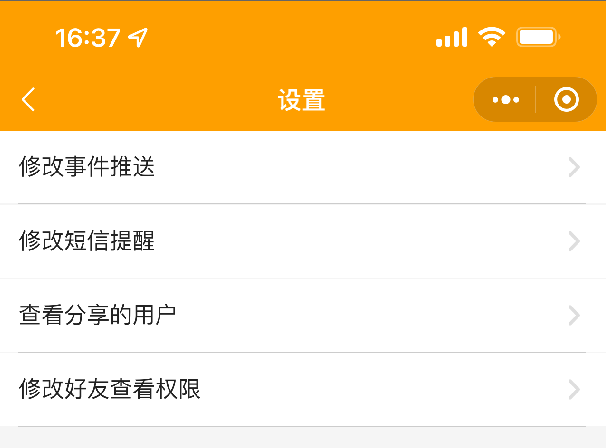 1. 設(shè)置:可修改事件推送、修改短信提醒、查看分享用戶、查看我的權(quán)限、刪除設(shè)備操作。