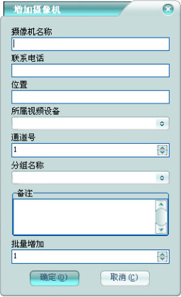 批量增加:批量增加多個(gè)攝像機(jī),多于1時(shí),對(duì)攝像機(jī)名稱和通道號(hào)自增。