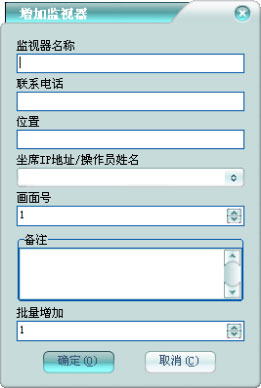 批量增加:批量增加多個(gè)監(jiān)視器,多于1時(shí),對(duì)監(jiān)視器名稱和畫面號(hào)自增。