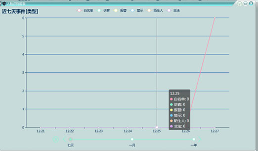 統(tǒng)計(jì)最近七天、一個(gè)月每天的各類人次及最后一年每月的各類人次,且具備實(shí)時(shí)刷新能力;通過表報(bào)的形式可以清楚明白的展示。