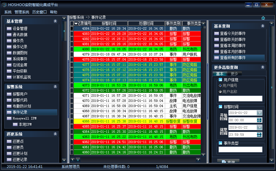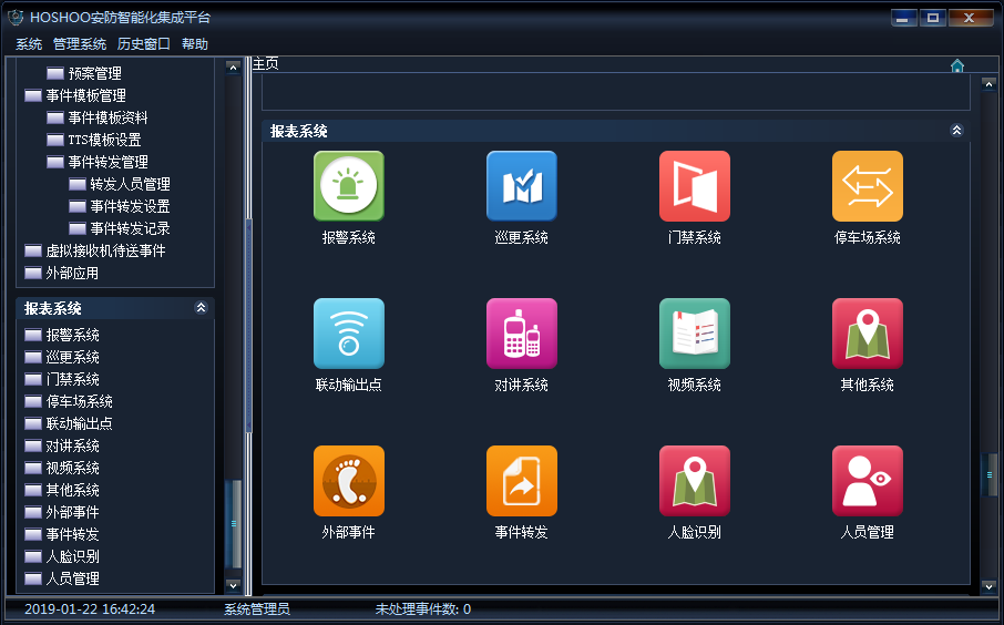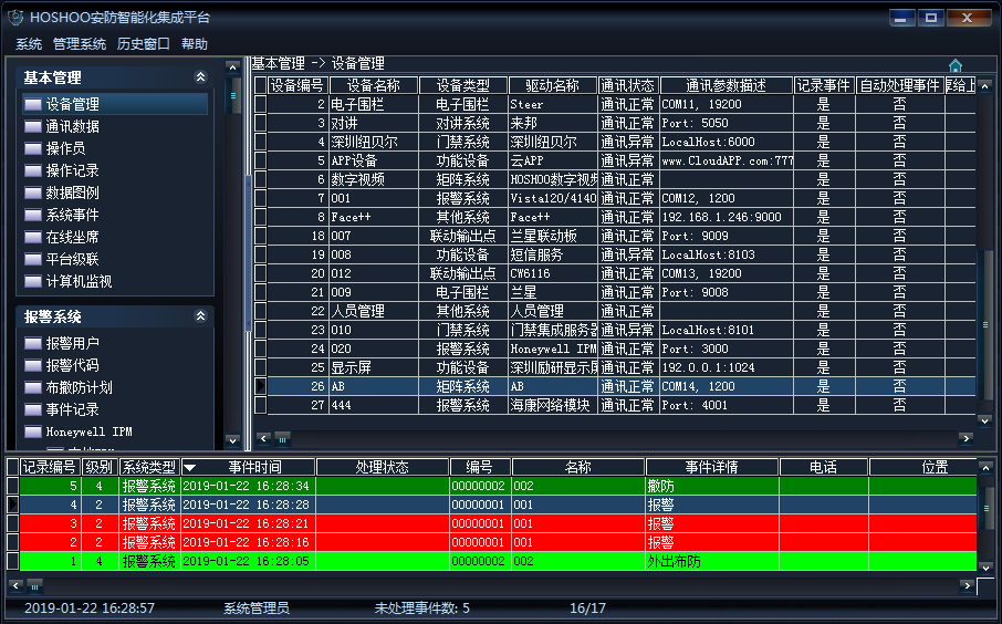 事件欄:平臺(tái)接收新事件的顯示區(qū)域,該處顯示未處理事件。事件處理在這里進(jìn)行,處理后,將從這里刪除,將進(jìn)入歷史數(shù)據(jù)。