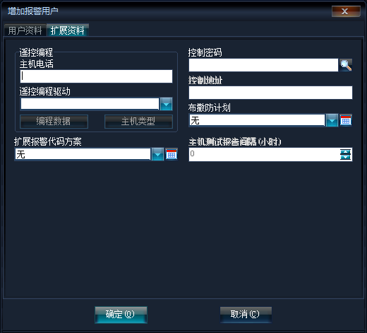 遙控編程:主機(jī)電話:主機(jī)所接電話的電話號(hào)碼。遙控編程驅(qū)動(dòng):選擇當(dāng)前用戶的報(bào)警主機(jī)對(duì)應(yīng)的編程驅(qū)動(dòng)。編程數(shù)據(jù):點(diǎn)擊之后,將彈出編程數(shù)據(jù)窗。主機(jī)類(lèi)型:修改當(dāng)前報(bào)警主機(jī)對(duì)應(yīng)的編程主機(jī)類(lèi)型。
