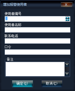 右鍵菜單,點(diǎn)擊【增加】,將彈出增加報(bào)警使用者框,如下圖: