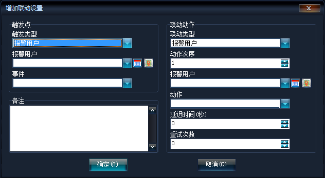 右鍵菜單,點(diǎn)擊【增加】,將彈出增加聯(lián)動(dòng)設(shè)置框,如下圖: