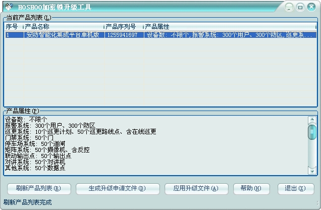 4、單擊【刷新產(chǎn)品列表】按鈕,顯示當(dāng)前加密鎖產(chǎn)品名稱(chēng)及產(chǎn)品屬性。