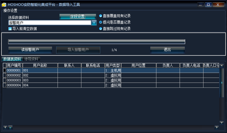 用戶編號(hào)不允許重復(fù),用戶名稱(chēng)不允許為空,這些是報(bào)警用戶必須的信息。