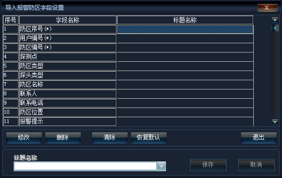 以報(bào)警防區(qū)資料導(dǎo)入為例,首先在【選擇數(shù)據(jù)資料】中選擇警報(bào)防區(qū),點(diǎn)擊【讀報(bào)警防區(qū)】按鈕選擇要導(dǎo)入的Excel數(shù)據(jù),點(diǎn)擊【字段設(shè)置】按鈕,顯示如下圖: