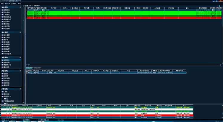 在平臺軟件中操作面板里的報警系統(tǒng)面板組上,點(diǎn)擊【報警用戶】,功能區(qū)將顯示報警用戶數(shù)據(jù)網(wǎng)格,如下圖: