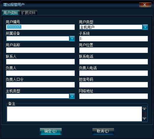 可錄入報警用戶的聯(lián)系信息和主機(jī)類型及用戶備注。