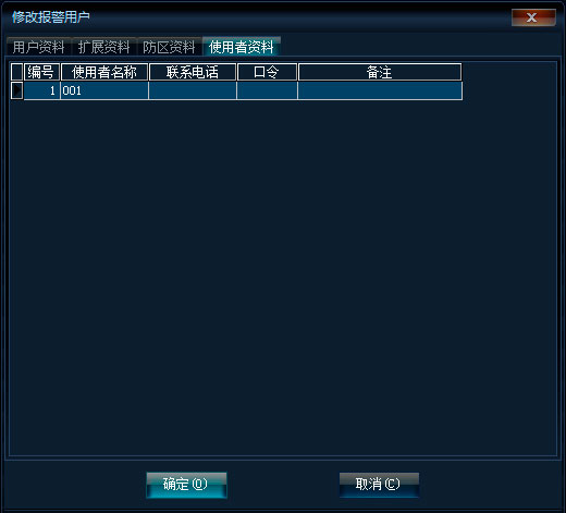 當(dāng)修改報警用戶時,還會有防區(qū)資料和使用者資料錄入。