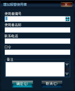 右鍵菜單,點(diǎn)擊【增加】,將彈出增加報警用戶框,如下圖: