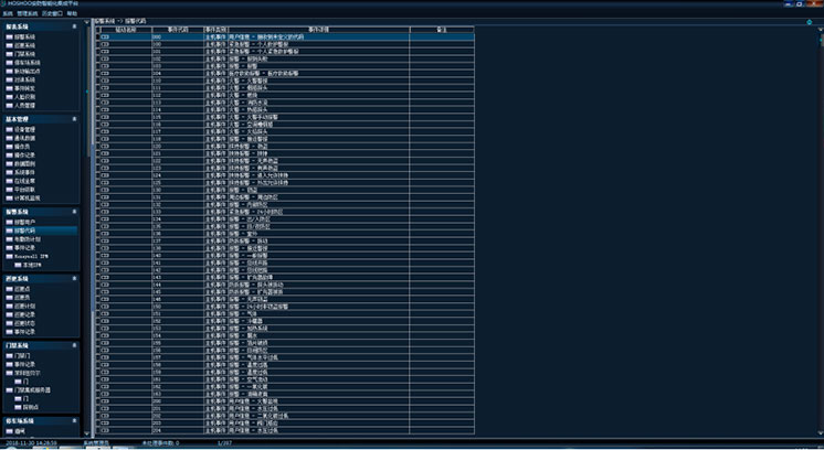 在平臺軟件中操作面板里的報警系統(tǒng)面板組上,點(diǎn)擊【報警代碼】,功能區(qū)將顯示報警代碼數(shù)據(jù)網(wǎng)格,如下圖: