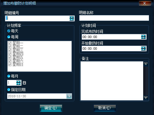 可錄入布撤防計劃明細(xì)備注。