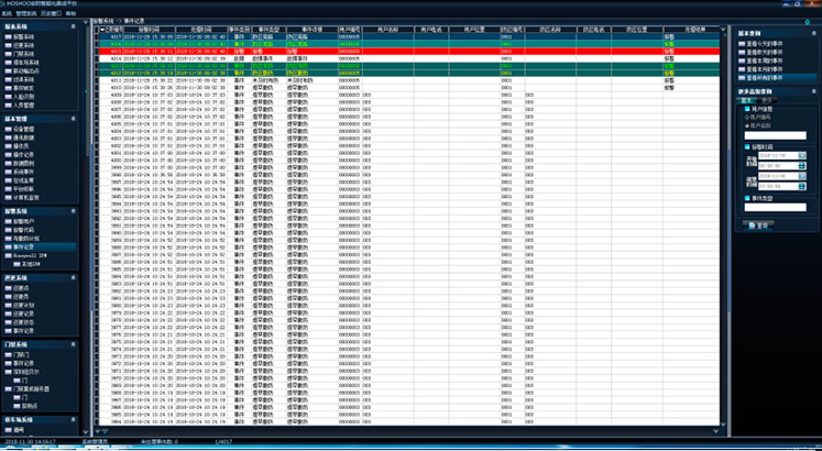 在平臺軟件中操作面板里的報警系統(tǒng)面板組上,點(diǎn)擊【事件記錄】,功能區(qū)將顯示報警事件記錄數(shù)據(jù)網(wǎng)格,如下圖: