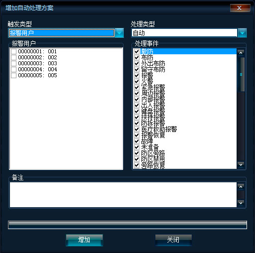 右鍵菜單,點(diǎn)擊【增加】,將彈出增加報警使用者框,如下圖