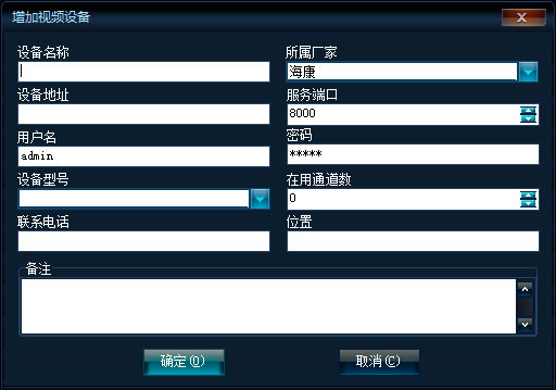 可錄入視頻設(shè)備的聯(lián)系信息及視頻設(shè)備備注。