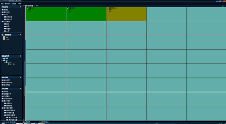上部的左邊區(qū)域,顯示報警用戶樹,展開某一用戶,為該用戶的防區(qū);右邊為控制區(qū)域,上面為控制功能區(qū),下面為狀態(tài)區(qū)。