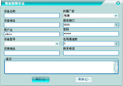 可錄入視頻設(shè)備的聯(lián)系信息及視頻設(shè)備備注。