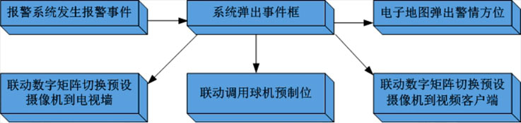 舉例說明,如發(fā)生報(bào)警后,系統(tǒng)自動(dòng)聯(lián)動(dòng)控制流程: