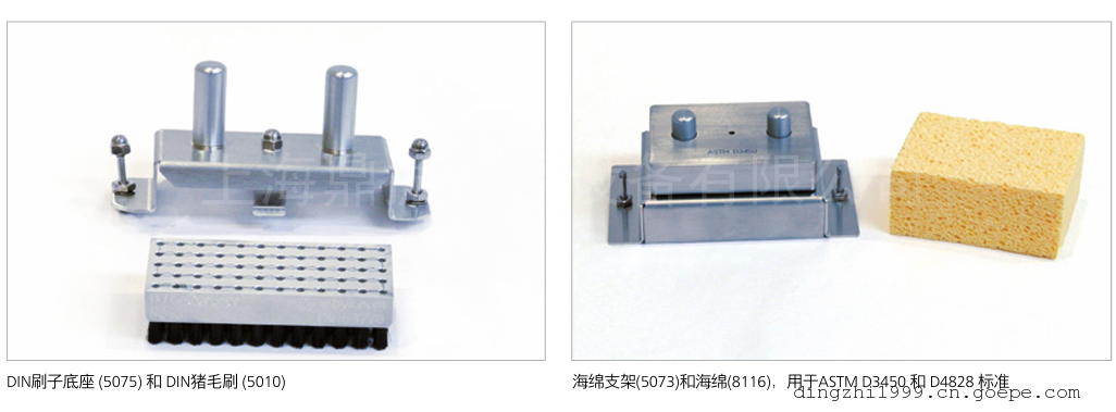 基本型(5060), 1個刷子底座帶襯墊(5074);尼龍刷(5011);Lilly框架(5038) 黃銅墊片(6979);玻璃板(6980);擦洗試驗板(5015) |